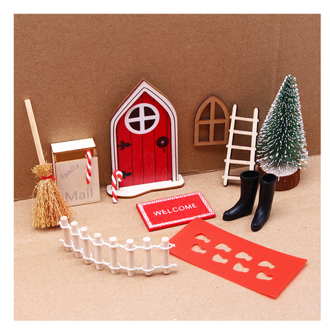 Christmas Elf Girl Enchanted Outdoor Xmas Decor Wooden Tiny Miniature Tooth Fairy Door House Decorations for Child (Red Door)