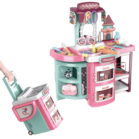 Tavolo da trucco per bambine Set da toeletta principessa per bambini che si vestono giocando Set da trucco valigia 3 IN 1 Set di giochi di ruolo portatile