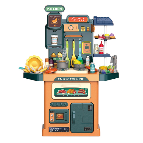 Réaliste Lumières Sons Faire semblant de jouer à la vapeur Évier Four Changement de couleur Alimentaire Menu Conseil Enfants Filles Rose Cuisine Jouet Ensemble pour les tout-petits