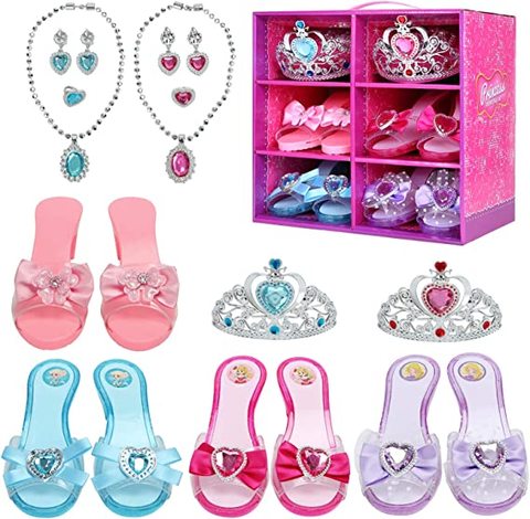 Simulation de bijoux Boutique de chaussures de princesse à la mode avec diadèmes colliers boucles d'oreilles pour tout-petits filles fête d'anniversaire Cosplay